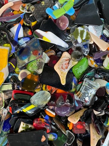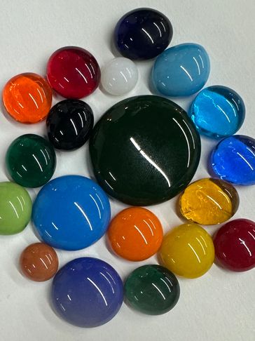 Glass pebbles are smooth, rounded pieces of glass that bring a touch of elegance and a polished finish to your fused glass creations. These versatile pebbles can be used as accents, focal points, or to create stunning patterns. Did you know? Placing two glass squares in the kiln, arranged in the shape of a Star of David, can transform them into a rounded pebble.